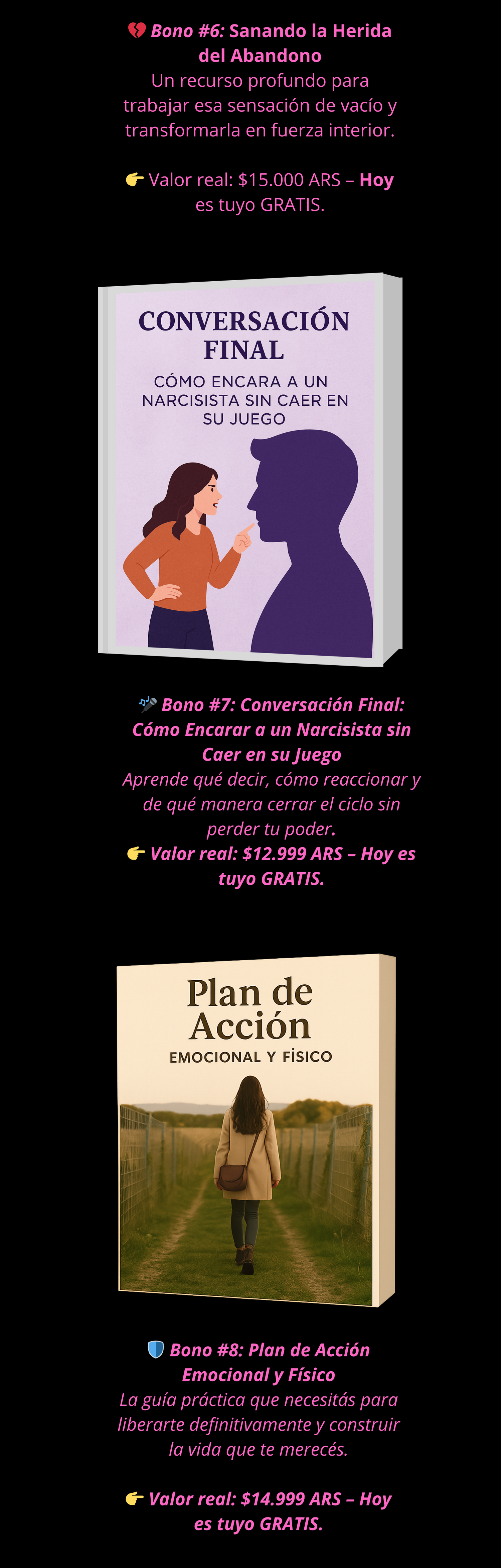 Además de todo lo que recibirás en Adiós Narcisista, quiero premiar tu decisión de liberarte y reconstruirte.